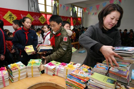 援建農(nóng)民工子弟學校圖書室。3月5日,浙江省舟山市南海實驗學校的同學將圖書送到定海區(qū)長峙陽光學校。