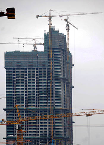 廣東省統(tǒng)計局的資料顯示,2008年1月至2月,廣東商品房屋銷售面積534.80萬平方米,同比增長21.5%。 圖為廣州珠江新城一處在建樓盤。