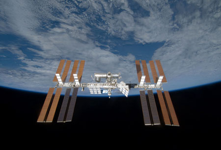 25日,“發(fā)現(xiàn)”號航天飛機與國際空間站分離,并拍攝下一組國際空間站的照片。