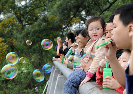 4月6日,市民們在白云山頂?shù)挠^景臺上觀賞游玩。4月4日到6日,廣州的許多市民來到白云山、云臺花園等風(fēng)景秀麗、空氣清新的郊外去野營、遠(yuǎn)足和踏青,以此方式來度過三天長假。新華社記者:周文杰