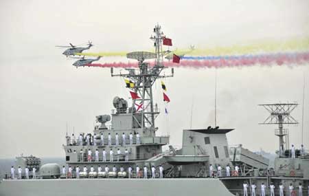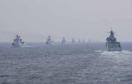 4月23日各國軍艦接受檢閱。新華社記者:李剛 攝 |