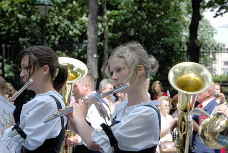 6日,女樂手在奧地利首都維也納市中心舉行的第30屆維也納銅管樂節(jié)上表演。來自奧地利、波蘭、斯洛伐克、列支敦士登等國的40支銅管樂隊,共約2000名樂手參加了當天的演奏及列隊行進表演。