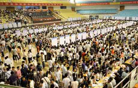 6月8日,江西省國資委所屬國有企業(yè)在省體育館聯(lián)合舉行高校畢業(yè)生招聘會,現(xiàn)場共有120多家企業(yè)參加,提供就業(yè)崗位3400余個,吸引了數(shù)千名求職者前來應(yīng)聘。圖為招聘會現(xiàn)場擠滿了求職者。 新華社發(fā)