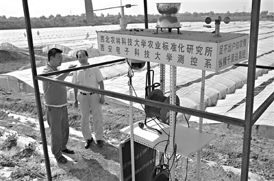 6月5日李鑫教授在室內(nèi)通過電腦指導(dǎo)瓜農(nóng)生產(chǎn)。陜西楊凌區(qū)大寨鄉(xiāng)官村天和園果蔬專業(yè)合作社的瓜農(nóng)們通過一種“電腦遠(yuǎn)程遙控”系統(tǒng)種植出來的西瓜,不僅瓤脆、甜度大、水分多,而且價格也高出市場的2到3倍。這種由西北農(nóng)業(yè)科技大學(xué)李鑫教授和西安電子科技大學(xué)共同完成的“電腦遠(yuǎn)程遙控”系統(tǒng),不但可以“遙控”生產(chǎn),還參與銷售,食品安全透明度大大增強(qiáng)。