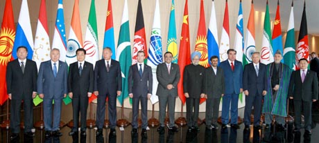 上海合作組織成員國元首理事會第九次會議16日在俄羅斯葉卡捷琳堡舉行,中國國家主席胡錦濤發(fā)表了重要講話。胡錦濤指出,中國將恪守承諾,繼續(xù)支持本組織框架內(nèi)的多邊和雙邊項目合作。為此,中方將提供100億美元的信貸支持,為上海合作組織成員國應(yīng)對國際金融危機沖擊作出自己的努力。此外,中方將組織貿(mào)易投資促進團赴成員國,推動同各成員國的進出口貿(mào)易和雙向投資。圖為與會成員國元首、觀察員國領(lǐng)導(dǎo)人和主席國客人集體合影。