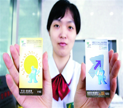 7月1日,一名郵政工作人員在安徽省合肥市三牌樓郵政大廳內(nèi),展示將要發(fā)售的世博會門票。