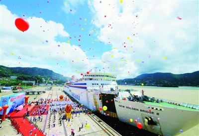 7月13日,“新金橋Ⅱ”客滾輪徐徐離開(kāi)福州馬尾港。當(dāng)天上午11時(shí),福建交通運(yùn)輸集團(tuán)“新金橋Ⅱ”豪華客滾輪載著630名旅客從福州馬尾出發(fā)直航臺(tái)灣基隆港。這是兩岸海上客滾直航福州馬尾首航,也是大陸直航臺(tái)灣本島的第一艘客輪。