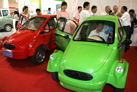 7月13日,第五屆北京國際電動(dòng)車暨清潔能源車展覽會(huì)在北京中國國際展覽中心開幕,圖為觀眾在參觀體驗(yàn)微型電動(dòng)轎車。本次展會(huì)展出了電動(dòng)公交車、電動(dòng)轎車、電動(dòng)觀光車及相關(guān)零部件等,有130多家企業(yè)參展。