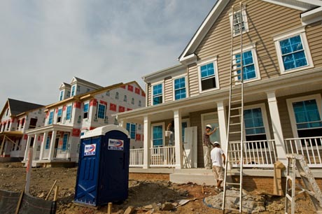8月5日,在美國弗吉尼亞州布里斯托的一處名為“新布里斯托村”的新開發(fā)社區(qū),油漆工粉刷即將完工的房屋。德意志銀行5日發(fā)表分析報(bào)告預(yù)測,到2011年美國抵押貸款住房資不抵債的比例將大幅升至48%,這預(yù)示著美國房貸市場屆時將再遭沖擊。新華社/法新