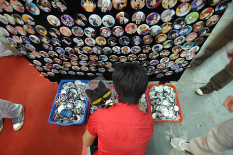8月12日,在動漫電玩節(jié)上,一位市民在挑選動漫徽章。
