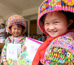 8月31日,么窩希望小學(xué)女童班的王橋(右一)小朋友領(lǐng)到免費(fèi)教科書(shū)。 當(dāng)日,廣西隆林各族自治縣者浪鄉(xiāng)么窩村希望小學(xué)的學(xué)生們?cè)趫?bào)名后,高興地領(lǐng)到了免費(fèi)教科書(shū)。今年秋季開(kāi)學(xué)后,隆林縣約5.7萬(wàn)名義務(wù)教育階段的特困生都將領(lǐng)到免費(fèi)教科書(shū)。