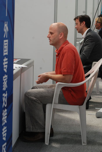 10月11日,在中國無錫人才智力交流大會上,前來應(yīng)聘的外籍人員與用人單位的代表交談。當(dāng)天,2009年中國無錫人才智力交流大會在無錫市體育中心開幕,近600家企業(yè)提供1萬多個(gè)崗位,吸引了近2萬名求職者進(jìn)場應(yīng)聘,其中不乏一些外籍人士前來咨詢。新華社發(fā)
