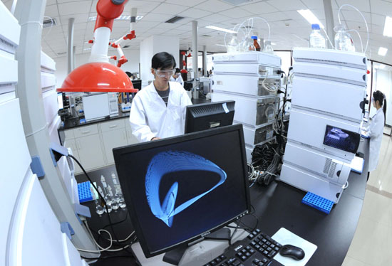 10月18日,凱萊英(天津)有限公司的科技人員在進(jìn)行生物醫(yī)藥技術(shù)研發(fā)。據(jù)介紹,天津?yàn)I海新區(qū)加快發(fā)展現(xiàn)代生物醫(yī)藥產(chǎn)業(yè),重點(diǎn)規(guī)劃了10平方公里的京津冀生物醫(yī)藥產(chǎn)業(yè)化示范區(qū),預(yù)計在5年內(nèi)形成500億元的產(chǎn)業(yè)規(guī)模。同時,還籌備設(shè)立了50億元“生物醫(yī)藥產(chǎn)業(yè)發(fā)展基金”,支持生物醫(yī)藥企業(yè)發(fā)展。目前,濱海新區(qū)已聚集了包括大型生物醫(yī)藥制造企業(yè)、傳統(tǒng)中醫(yī)藥生產(chǎn)企業(yè)、生物醫(yī)藥孵化器和醫(yī)療器械企業(yè)在內(nèi)的100多家企業(yè),產(chǎn)業(yè)規(guī)模近100億元,年均增長率接近40%。