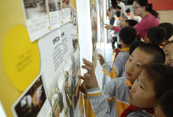 10月20日,安徽省“新中國(guó)60年教育掛圖走進(jìn)中小學(xué)校園”活動(dòng)啟動(dòng)儀式在合肥師范附屬小學(xué)舉行。本次活動(dòng)由新華社與教育部共同主辦,旨在通過(guò)圖片展示新中國(guó)60年的輝煌歷程,對(duì)中小學(xué)生進(jìn)行愛國(guó)主義教育、革命傳統(tǒng)教育和中華民族傳統(tǒng)美德教育。圖為當(dāng)日合肥師范附小的小學(xué)生在觀看掛圖。