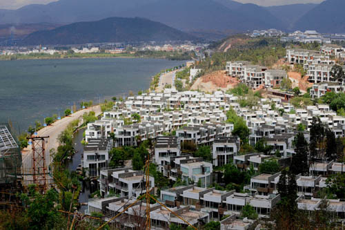 圖為建在已消失的“情人湖”上的“洱海天域”項目別墅區(qū)。
