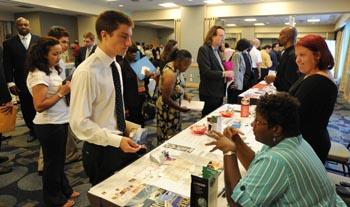 7月19日,在美國洛杉磯,人們在一次招聘會上尋找工作機(jī)會。新華社/法新 |