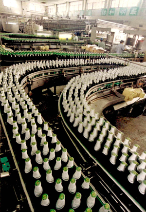 青島啤酒廠的現(xiàn)代化啤酒灌裝車間。新華社發(fā) |