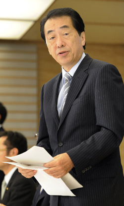 日本首相菅直人30日對(duì)日本銀行決定進(jìn)一步放寬貨幣政策給予肯定,認(rèn)為“是迅速應(yīng)對(duì)當(dāng)前形勢(shì)的措施”,希望能避免國內(nèi)經(jīng)濟(jì)因日元升值及歐美經(jīng)濟(jì)低迷而惡化。(法新社) |