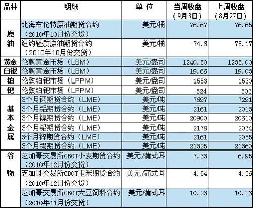 國際大宗商品期貨價格明細(xì)表[08.09]