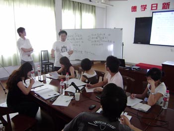 方太集團(tuán)董事長(zhǎng)茅理翔在把企業(yè)交給子女后,于2006年創(chuàng)辦專門(mén)針對(duì)民營(yíng)企業(yè)的“家業(yè)長(zhǎng)青”學(xué)院。圖為“家業(yè)長(zhǎng)青”學(xué)院學(xué)員在課堂上組織領(lǐng)導(dǎo)力測(cè)評(píng)。資料照片 |