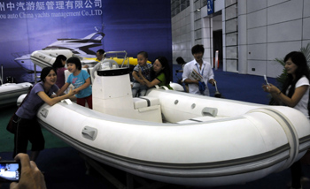 中秋假期,福州海峽國際會展中心同時舉行了第十六屆福州國際汽車展和中國(福州)首屆國際游艇展覽會,展廳內(nèi)豪華汽車和游艇同臺展示競奢華,吸引了大量參觀者。記者