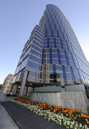 這是11月3日拍攝的位于美國加州洛杉磯的美國米高梅電影公司辦公大樓。 好萊塢擁有86年歷史的老牌電影制作公司米高梅公司由于無力償還約40億美元的債務(wù),于當(dāng)?shù)貢r(shí)間3日正式申請(qǐng)破產(chǎn)保護(hù)。米高梅曾推出過大批經(jīng)典影片,先后200次在奧斯卡金像獎(jiǎng)?lì)C獎(jiǎng)儀式上折桂,上世紀(jì)90年代以來多次易主,近年來鮮有佳作。