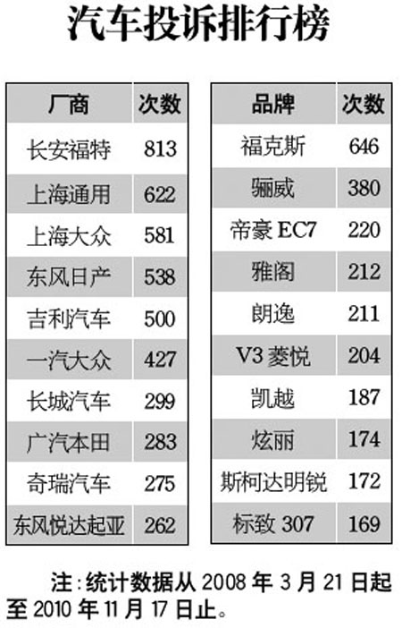 浙江汽車投訴高燒不退 質(zhì)量問題成投訴焦點(diǎn)