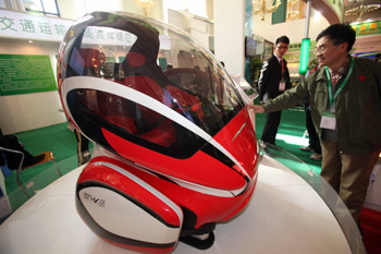 11月24日,參觀者在綠博會(huì)上觀看電動(dòng)聯(lián)網(wǎng)概念車。新華社發(fā)(陳曉根 攝) |