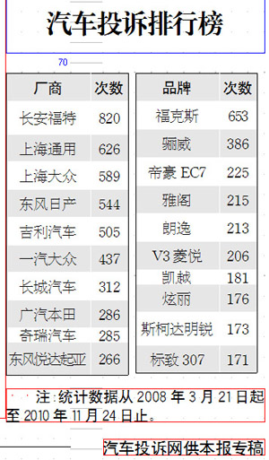 · 汽車(chē)投訴排行榜公布 長(zhǎng)安福特高居榜首 2010-10-21