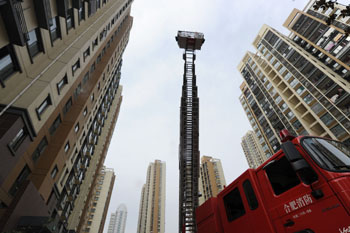 上海目前擁有消防云梯車(chē)、曲臂車(chē)等各類(lèi)舉高車(chē)近40輛,其中可升至50米以上的云梯車(chē)10余輛,最高可升至90米的舉高車(chē)僅有1輛。