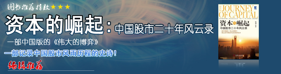 《資本的崛起》記錄了一個(gè)年輕的財(cái)經(jīng)媒體人眼中的中國(guó)股市發(fā)展歷史。在作者看來,其中既有成功者的喜悅,也有失敗者的悲戚;既有先行者的艱辛苦楚,也有后來者的銳意變革;既有草根平民締造的財(cái)富神話,也有資本梟雄演繹的起落沉浮。整部作品以時(shí)間為主線,記錄了每一年資本市場(chǎng)中的經(jīng)典瞬間,讀罷不禁令人掩卷深思。對(duì)于財(cái)經(jīng)媒體的工作者而言,也是一本不可多得的教科書。 |
