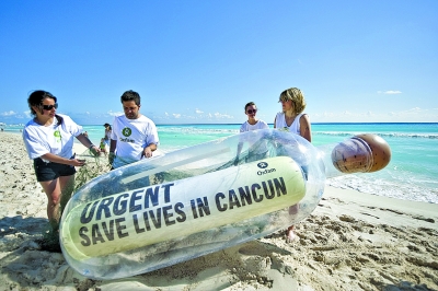 坎昆聯(lián)合國氣候變化大會29日將在墨西哥海濱城市坎昆召開,來自190多個國家和地區(qū)的官員、學(xué)者及非政府組織成員將就氣候變化問題展開磋商。分析認(rèn)為,雖然各方普遍認(rèn)為坎昆會議難以達(dá)成具有法律約束力的協(xié)議,但此次會議在資金技術(shù)、森林保護(hù)等方面仍有達(dá)成共識的空間,可為明年南非氣候大會打下基礎(chǔ)。圖為環(huán)保人士在坎昆海灘開展活動。(相關(guān)報道見四版)