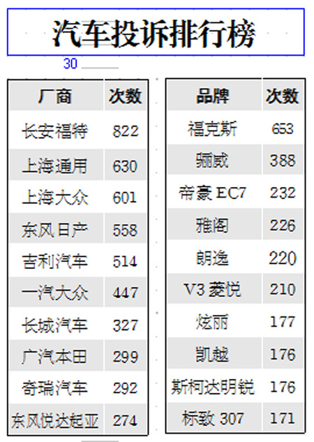 汽車投訴排行榜