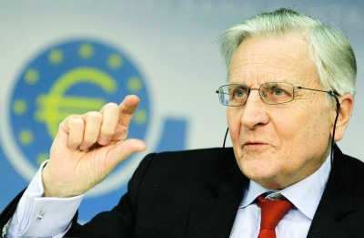 歐洲央行2日宣布,繼續(xù)將歐元區(qū)16國主導(dǎo)利率維持在1%這一歷史最低水平,并在明年3月前繼續(xù)向金融機構(gòu)提供無限額的三月期貸款,還將繼續(xù)購入歐元區(qū)國家國債以遏制債務(wù)危機蔓延,維護歐元穩(wěn)定。此外,歐洲央行對今年全年歐元區(qū)的經(jīng)濟增長預(yù)測由1.6%上調(diào)至1.7%,對今年歐元區(qū)通脹率的預(yù)測仍維持在1.6%。圖為歐洲央行行長特里謝在法蘭克福宣布上述決定。