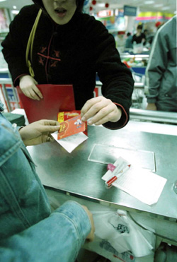 從宣武門地鐵站出來往南走300米有一個大型國際品牌超市,這300米內(nèi)布滿了收集各類購物卡的人群,他們手里的各類購物卡連成一長串,口中叫著“收卡收卡”,《經(jīng)濟參考報》記者以要出售該大型超市的1000元購物卡為由暗訪了數(shù)位在此多年的“黃!。