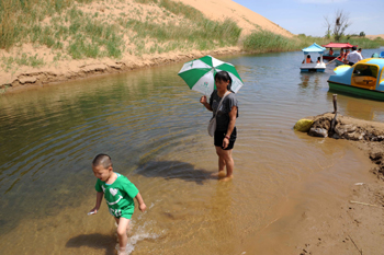 結(jié)合自然形成的沙湖景觀,恩格貝示范區(qū)還在沙湖湖畔建設(shè)總投資預(yù)計(jì)4000萬(wàn)元的觀光塔和1000多萬(wàn)元的水岸廣場(chǎng)。占地100畝的沙漠科學(xué)館,集沙漠溫泉、國(guó)際會(huì)議中心、五星級(jí)酒店為一體的體現(xiàn)“后花園”景觀的休閑度假核心區(qū)也在規(guī)劃當(dāng)中。