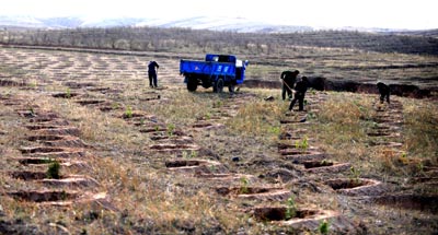 ▲準(zhǔn)格爾旗生態(tài)建設(shè)施工現(xiàn)場(chǎng)。