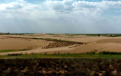 ▲鄂爾多斯杭錦旗庫(kù)布齊沙漠治理。