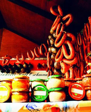 Brons銷(xiāo)量最高的是香腸巧克力,以當(dāng)?shù)靥禺a(chǎn)的榛子、海綿面包和餅干,碾碎或撕成小塊狀后,加入獨(dú)家秘制的榛子味巧克力后,攪和,再捆起。外形和真的香腸沒(méi)什么兩樣,是圣誕餐桌上最別致和美味的點(diǎn)綴。 店主人Vito