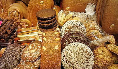 德國(guó)最著名的圣誕食品是姜餅Lebkuchen。這是是一種介乎于蛋糕與餅干之間的小點(diǎn)。傳統(tǒng)的姜餅,以蜂蜜、胡椒粒為材料,又甜又辣,口感刺激,F(xiàn)在的姜餅都經(jīng)過改良,外面灑上一層糖霜,不但口感豐富,外型也相當(dāng)討好。