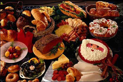 英國(guó)的圣誕大餐極其豐富,包括燒豬、火雞、圣誕布丁、干果餡餅等。據(jù)說吃英國(guó)圣誕火雞圣誕火雞這個(gè)習(xí)俗,已有300多年歷史。一般英國(guó)家庭都喜愛自行烹調(diào)火雞,將大量的蔬果如甘筍、西芹、洋蔥、栗子等,塞進(jìn)十來磅的火雞肚子里,再在表層抹上多種香料,然后才放入焗爐烤。圣誕布丁亦是傳統(tǒng)食品,傳統(tǒng)的圣誕布丁非常甜,吃一小角已心滿意足了!烹調(diào)時(shí),全家人都會(huì)參與,象征團(tuán)聚、和諧,并會(huì)在攪拌面團(tuán)時(shí)許愿,據(jù)說需以順時(shí)針方向攪,轉(zhuǎn)錯(cuò)方向便不吉利。最后藏入一枚硬幣,誰吃到便獲得一年好運(yùn)!