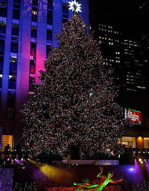 當(dāng)?shù)貢r(shí)間11月30日,美國紐約洛克菲勒中心廣場(chǎng)圣誕樹的裝飾彩燈被正式點(diǎn)亮。今年選中的圣誕樹高約23.2米,裝飾有30000個(gè)節(jié)能彩燈和一顆巨大的水晶星。