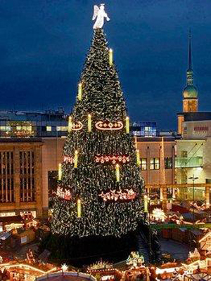 在多特蒙德的圣誕市場(chǎng),有一棵身著節(jié)日盛裝圣誕樹,它身高45米,當(dāng)然這棵樹也不是自然生長的,而是由1700棵云杉組合而成。