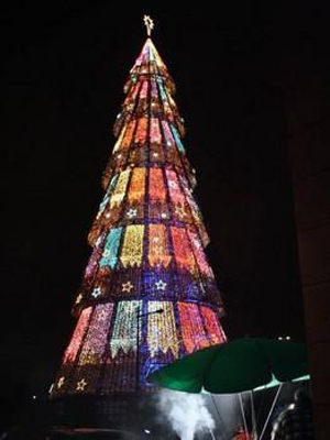 VII公園的這棵高44米的圣誕樹乃是全鋼打造,上面有1,625,000個(gè)小燈泡裝飾。