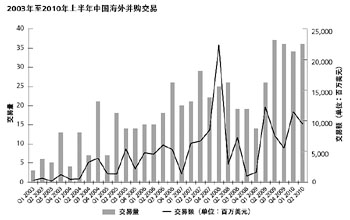 根據(jù)摩根大通的一項統(tǒng)計,在2010年上半年,中國作為收購方的并購交易額排在美國之后居全球第二位。清科研究中心分析師徐衛(wèi)卿對《經(jīng)濟(jì)參考報》記者表示,綜合來看,隨著中國經(jīng)濟(jì)的持續(xù)增長及企業(yè)實力的增強(qiáng),國內(nèi)不少民營公司和國有企業(yè)坐擁巨額資金,企業(yè)壓抑的并購需求在金融危機(jī)后得到了釋放,中國企業(yè)走出去參與海外并購重組已成為一種必然的趨勢,未來幾年必將保持高增長。