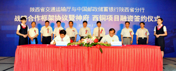 中國(guó)郵政儲(chǔ)蓄銀行陜西省分行與省交通廳簽訂戰(zhàn)略合作框架協(xié)議。 |