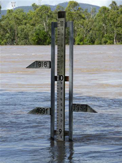 澳大利亞?wèn)|部遭受罕見(jiàn)洪災(zāi)。這是1月2日在澳大利亞昆士蘭州羅克漢普頓拍攝的菲茨羅伊河中測(cè)量洪水水位的標(biāo)尺。新華社/美聯(lián) |