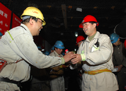 王社平在井下慰問一線職工 |