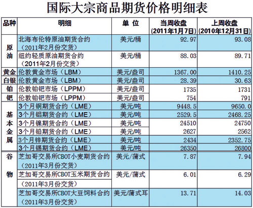 · 國際大宗商品期貨價(jià)格明細(xì)表 2010-11-29