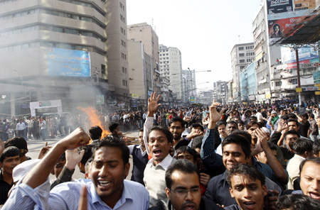 孟加拉國達卡股票交易所主要指數(shù)10日暴跌9%以上,單日跌幅創(chuàng)下該國股市創(chuàng)立55年來新高,監(jiān)管機構(gòu)被迫停止股票交易,關(guān)閉兩大股票交易所。關(guān)閉股市的消息傳出后,憤怒的投資者聚集到達卡股票交易所門前舉行了抗議活動,他們?nèi)计鸹鸲、封鎖交易所附近的道路,并呼喊口號,指責(zé)股票交易商和經(jīng)紀(jì)人操縱股價的欺詐行為。對于股市的連續(xù)下跌,該國證券交易委員會官員表示,目前尚不清楚原因。據(jù)悉,孟加拉國政府向達卡股票交易所附近加派了警力和快速反應(yīng)部隊。